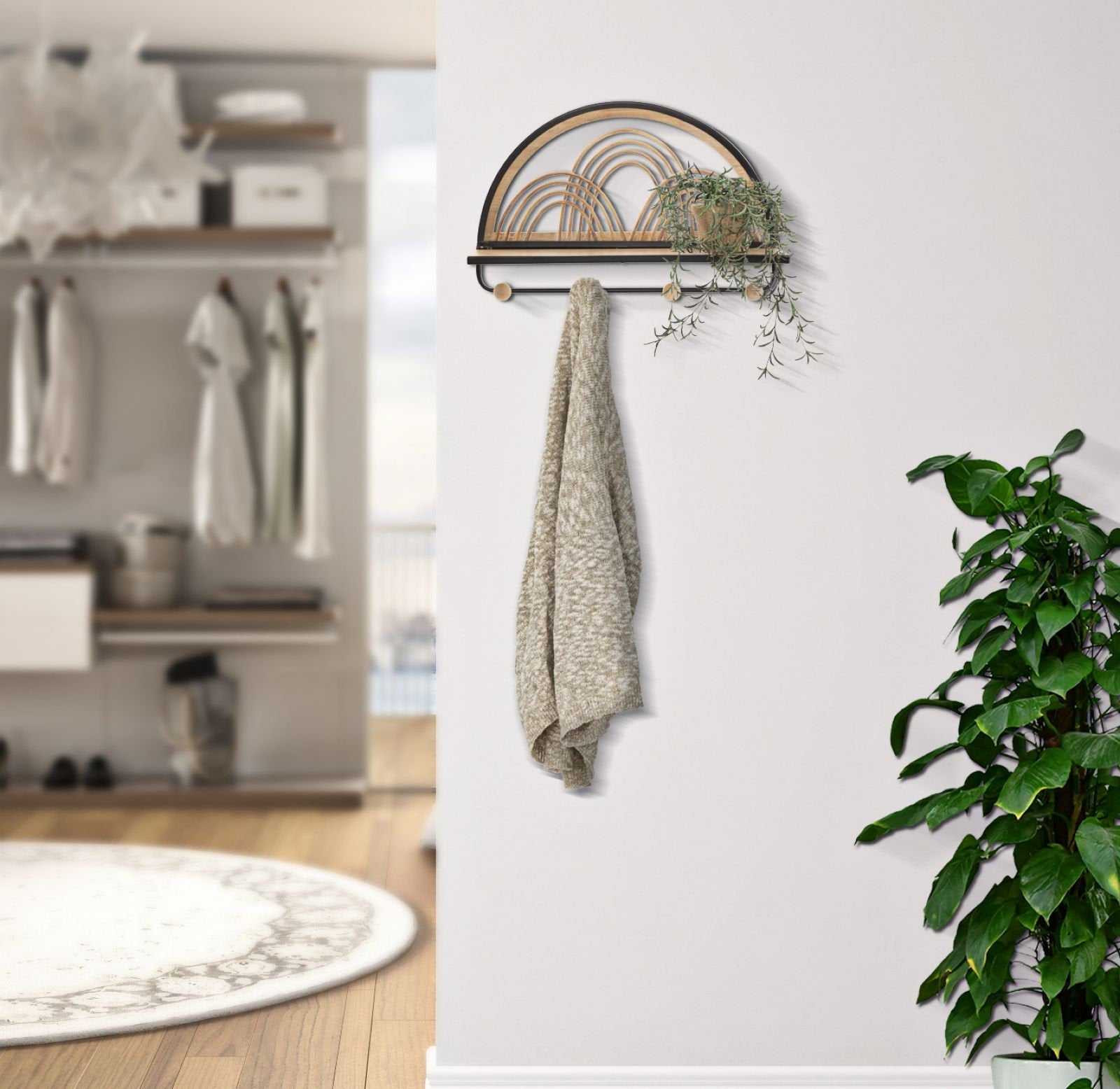 Estante de pared con 4 colgadores – Diseño redondeado y tonos contrastantes