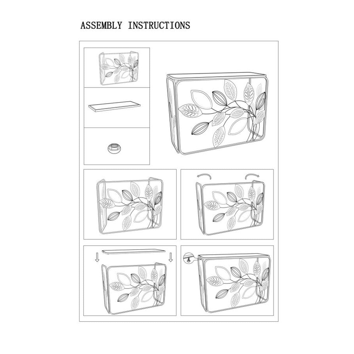 Consola de metal negro con diseño de hojas y tapa de madera
