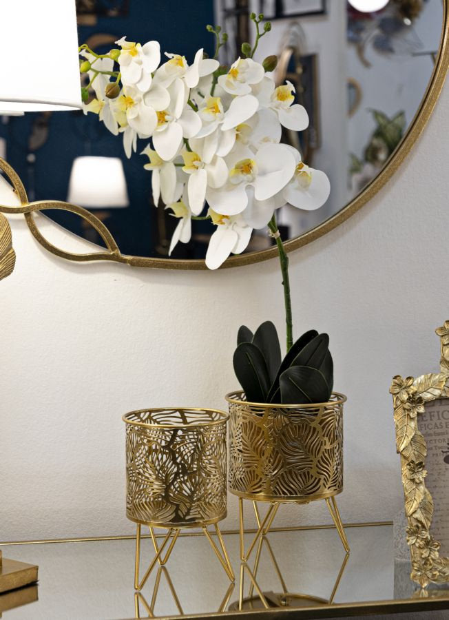 Par de soportes para jarrones de metal dorado con tallas inspiradas en hojas