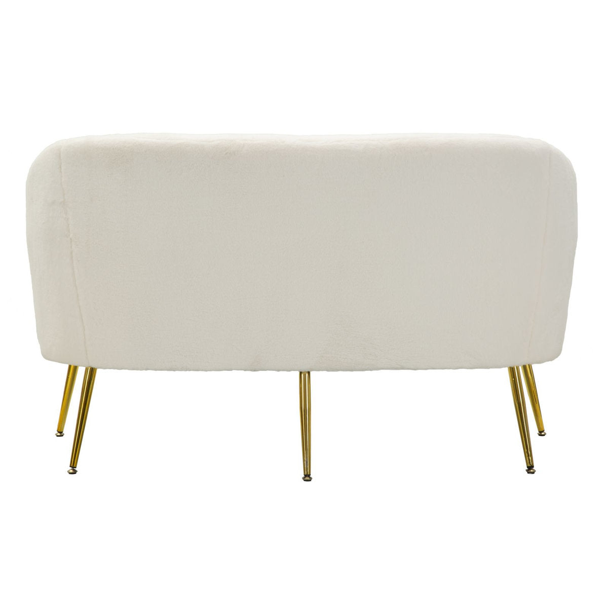 Sofá blanco de 2 plazas tapizado en piel sintética con patas doradas – Lujo moderno