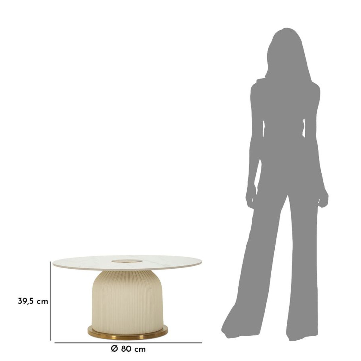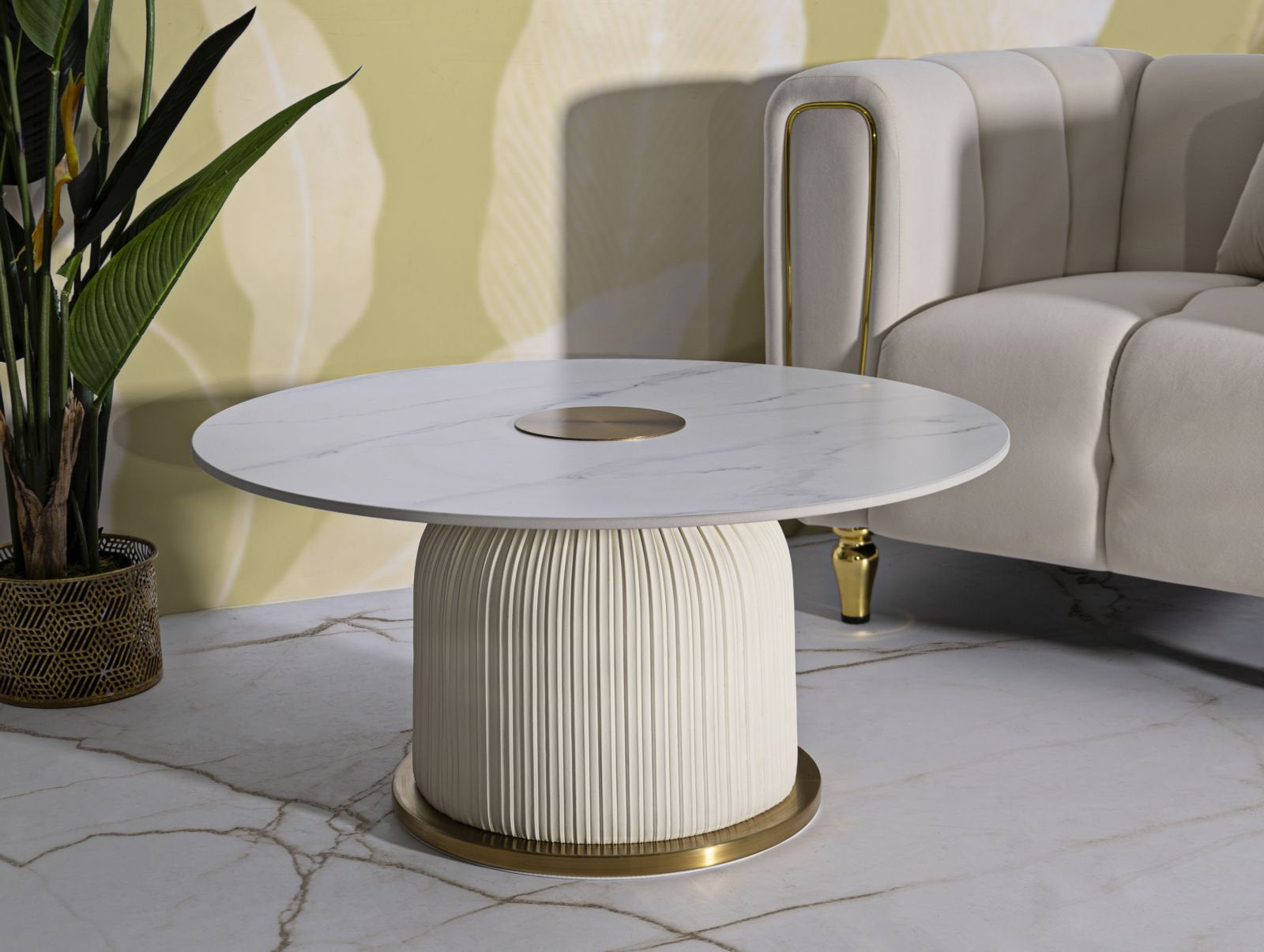 Mesa de centro Nova con base acanalada clara y tapa con efecto mármol