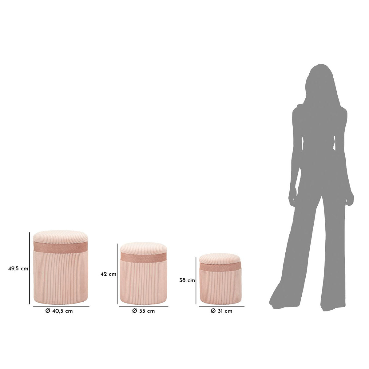 Juego de tres pufs neutros: almacenamiento y comodidad con estilo