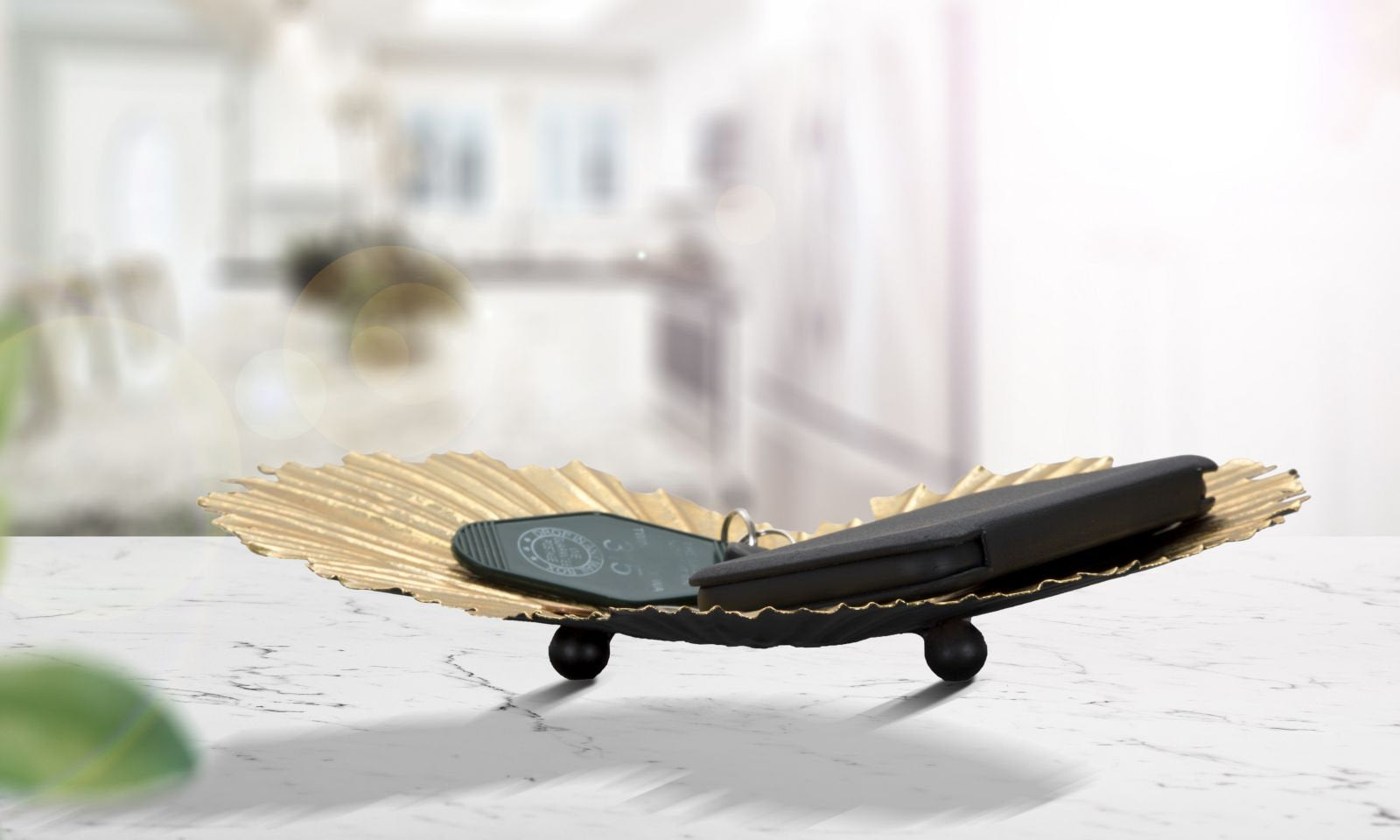 Bandeja dorada de metal en forma de corazón: elegante detalle para la entrada