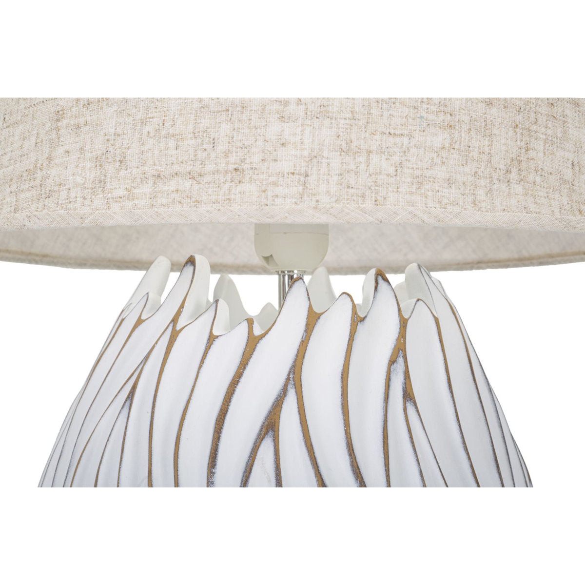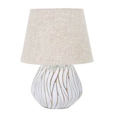 Lámpara de mesa de resina con relieve lineal – Pantalla beige
