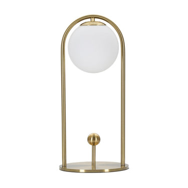 Lámpara de mesa minimalista dorada con esfera de cristal blanco