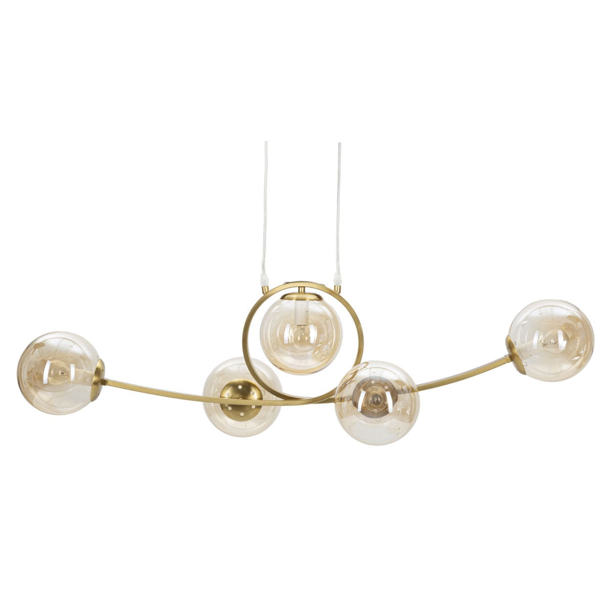 Lámpara de techo dorada con 5 luces esféricas de cristal