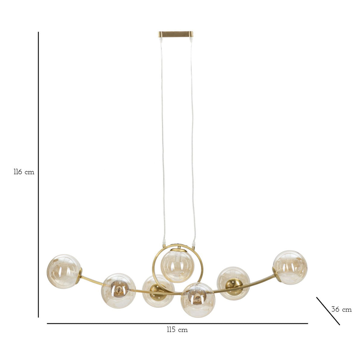 Lámpara de techo dorada de 7 luces con elegantes esferas de cristal blanco