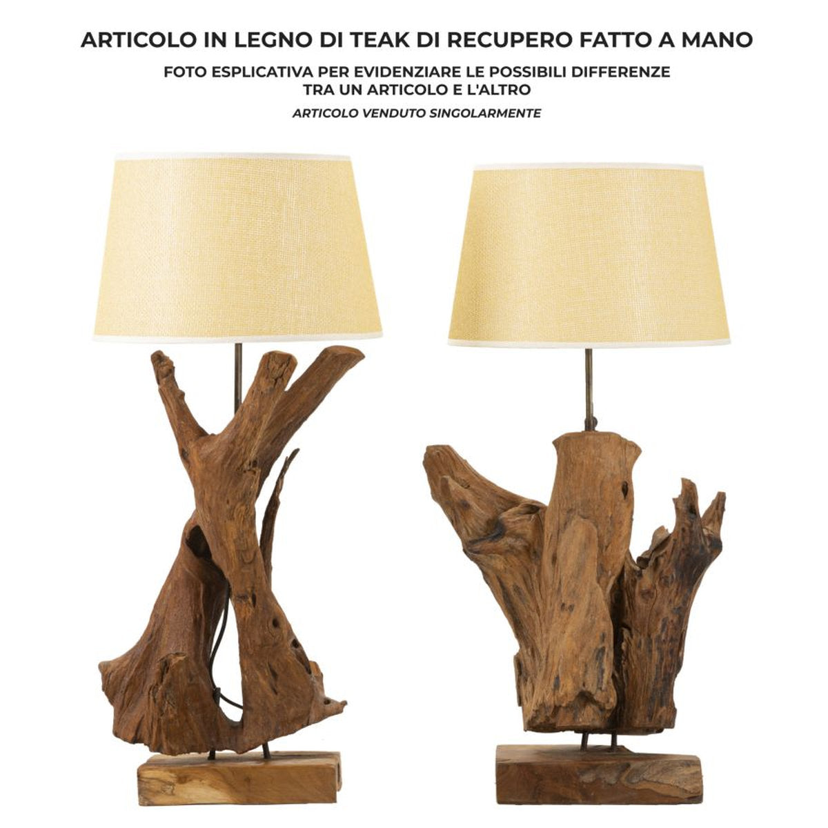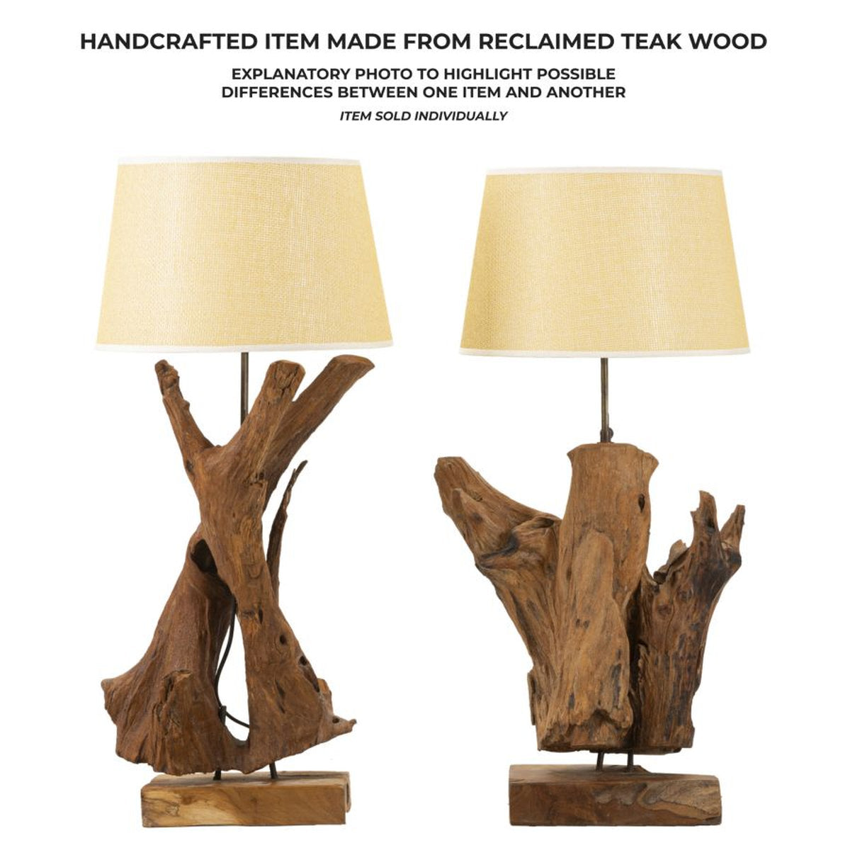 Lámpara de mesa artesanal de teca reciclada – Pieza natural única