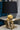 Lámpara de resina con forma de pareja de perros dorados y pantalla negra