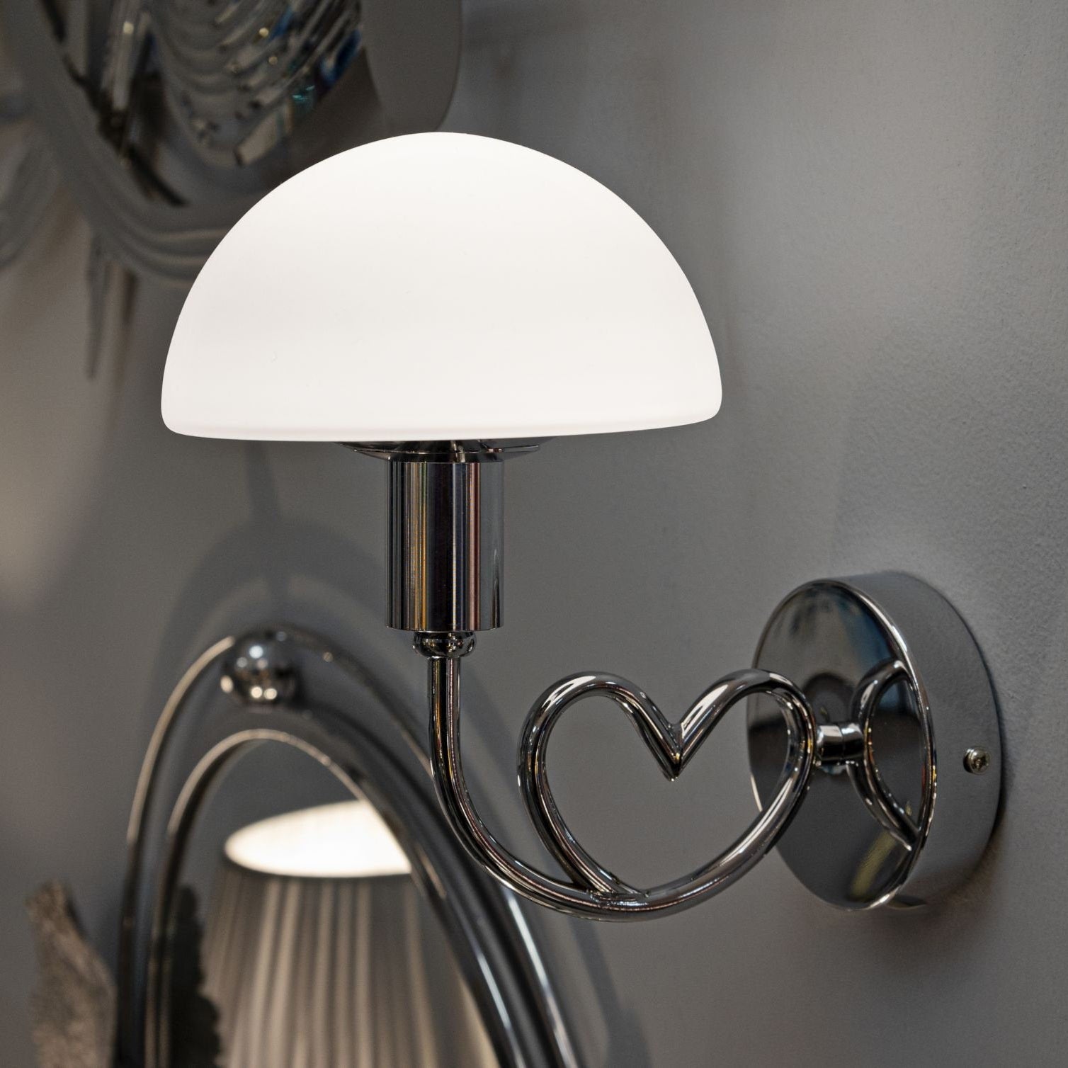 Lámpara de pared Corazón Plateado con pantalla de cristal blanco mate
