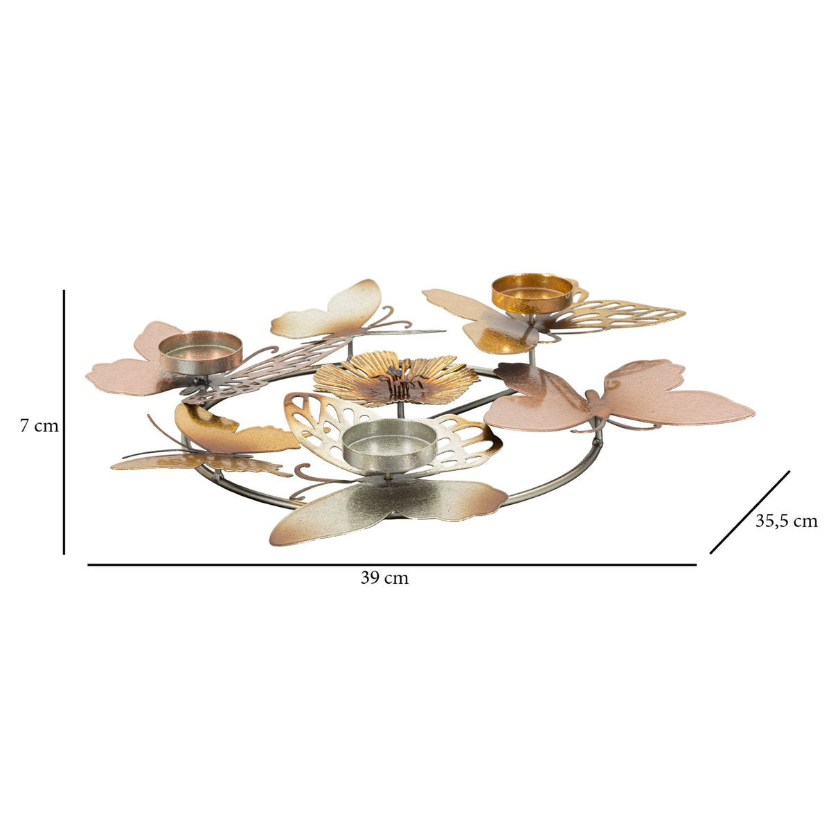 Portavelas redondo con forma de mariposa y flor para 3 velas