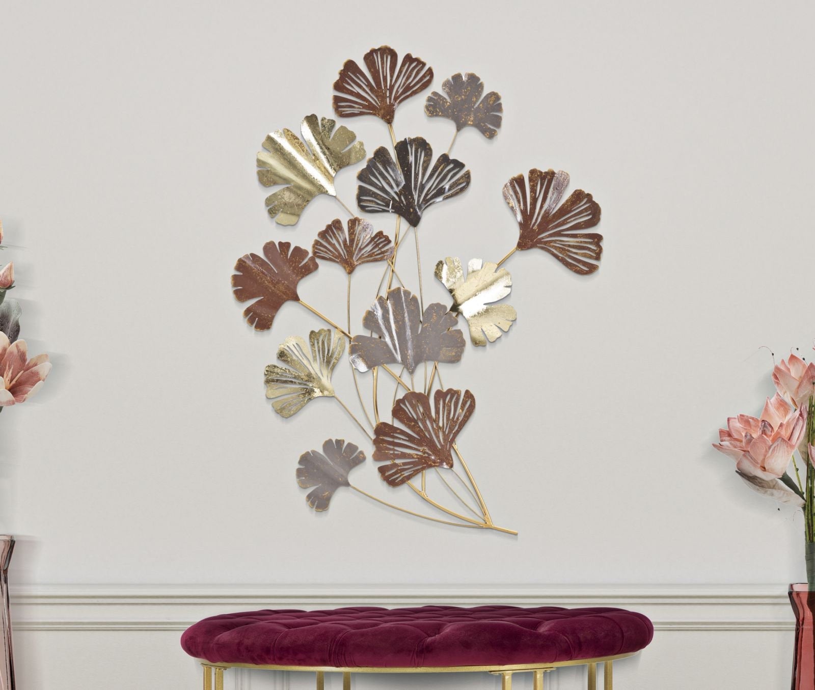 Panel de ramas con hojas doradas – Elegante arte mural en 3D