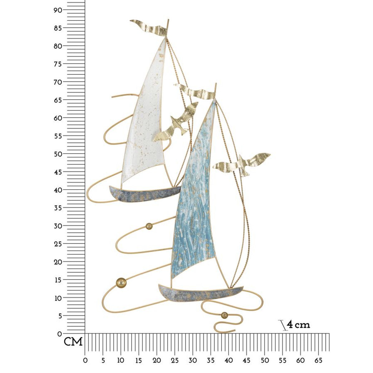 Panel de pared metálico 3D con veleros costeros y gaviotas