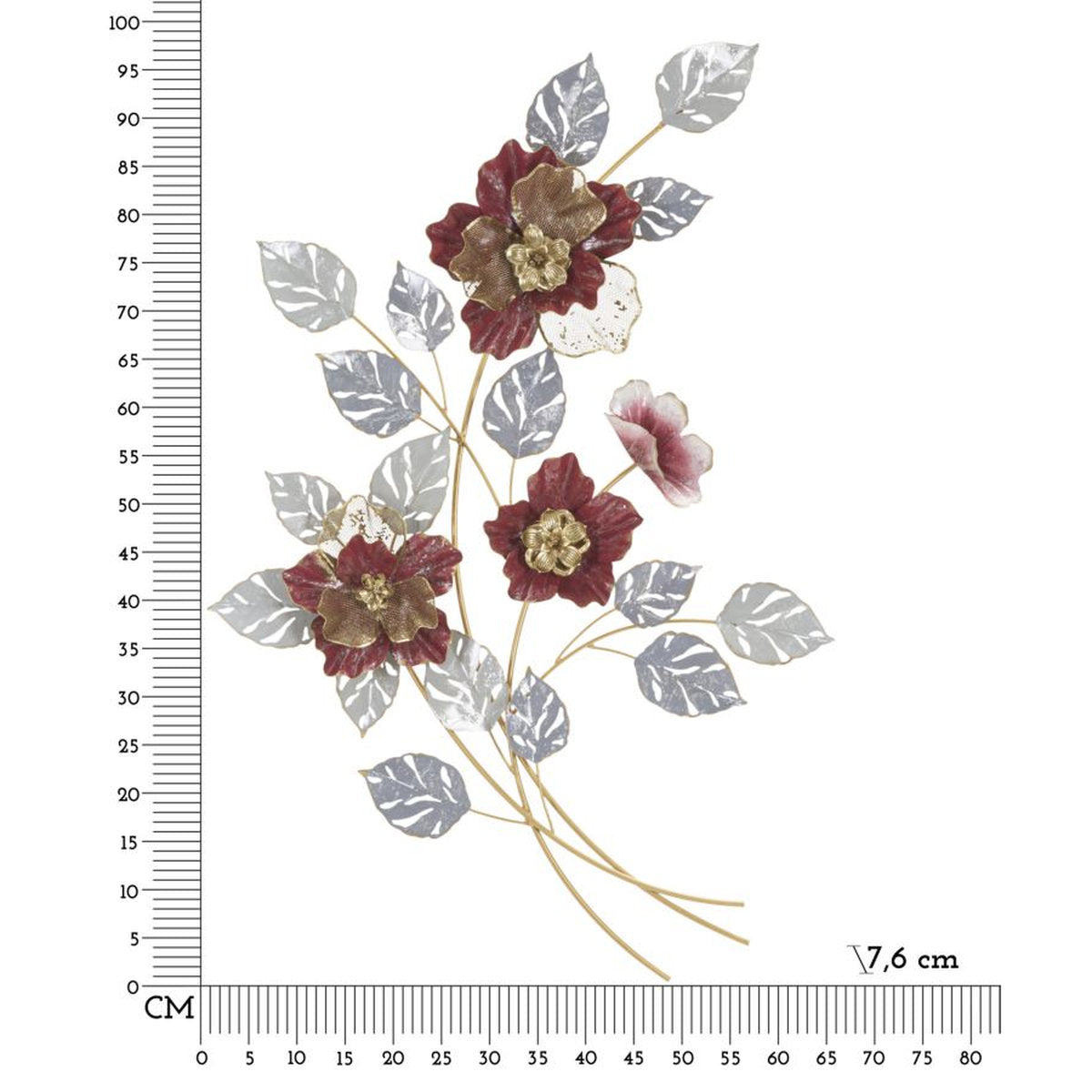 Obra de arte en metal tridimensional con flores y hojas multicolores