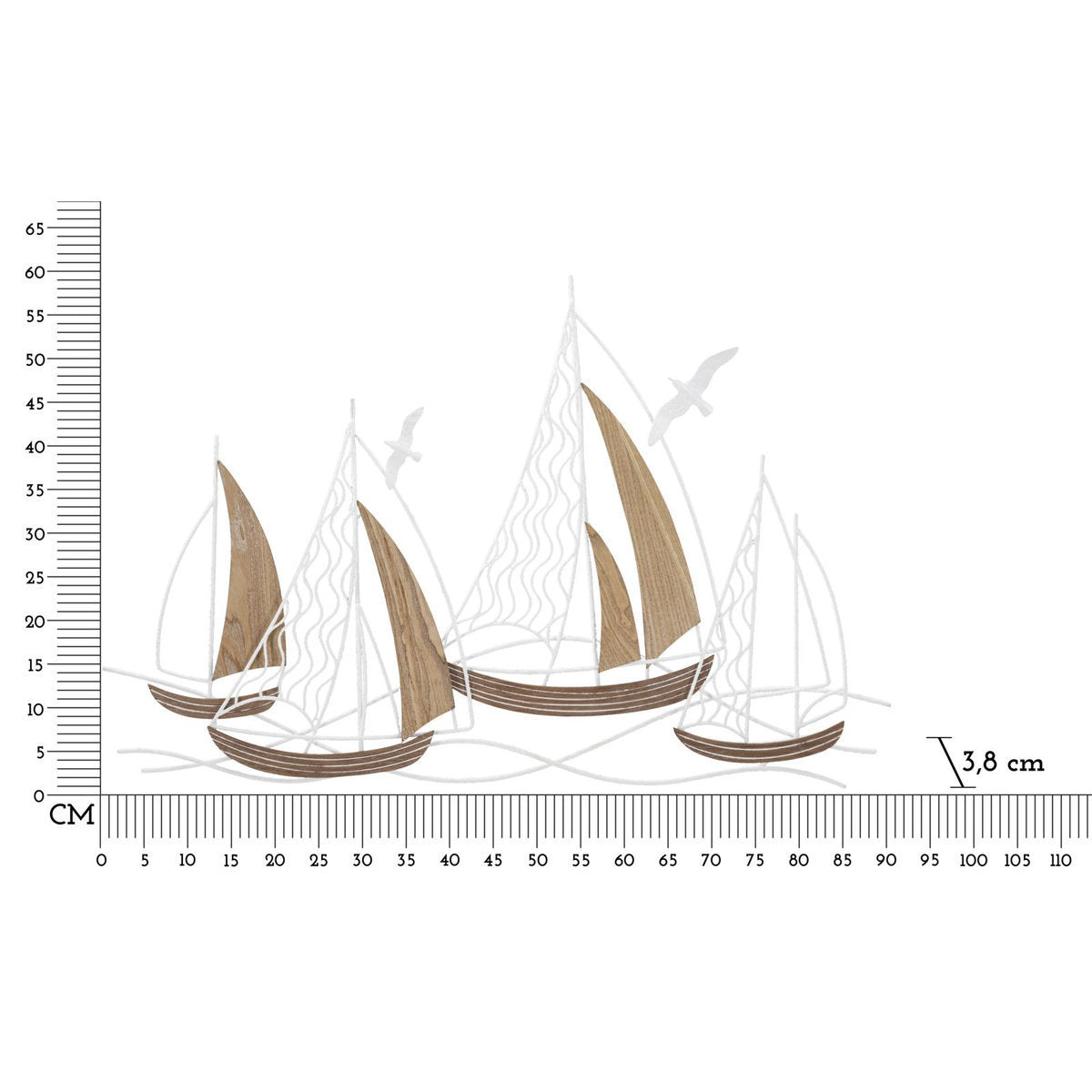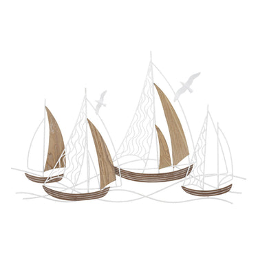 Arte mural tridimensional de veleros y gaviotas con materiales mixtos