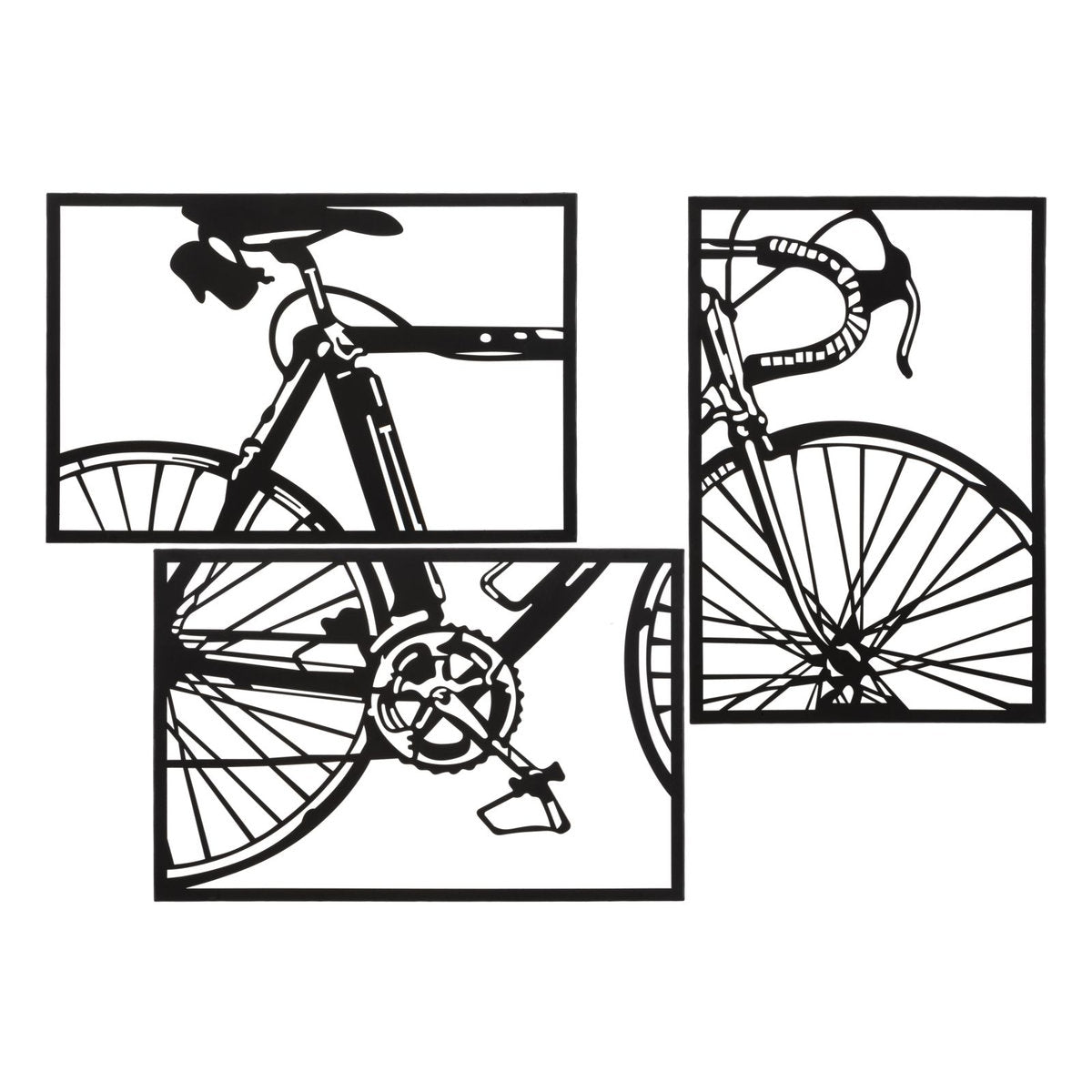 Cuadro decorativo de pared de metal negro de 3 piezas: Silueta de bicicleta en movimiento