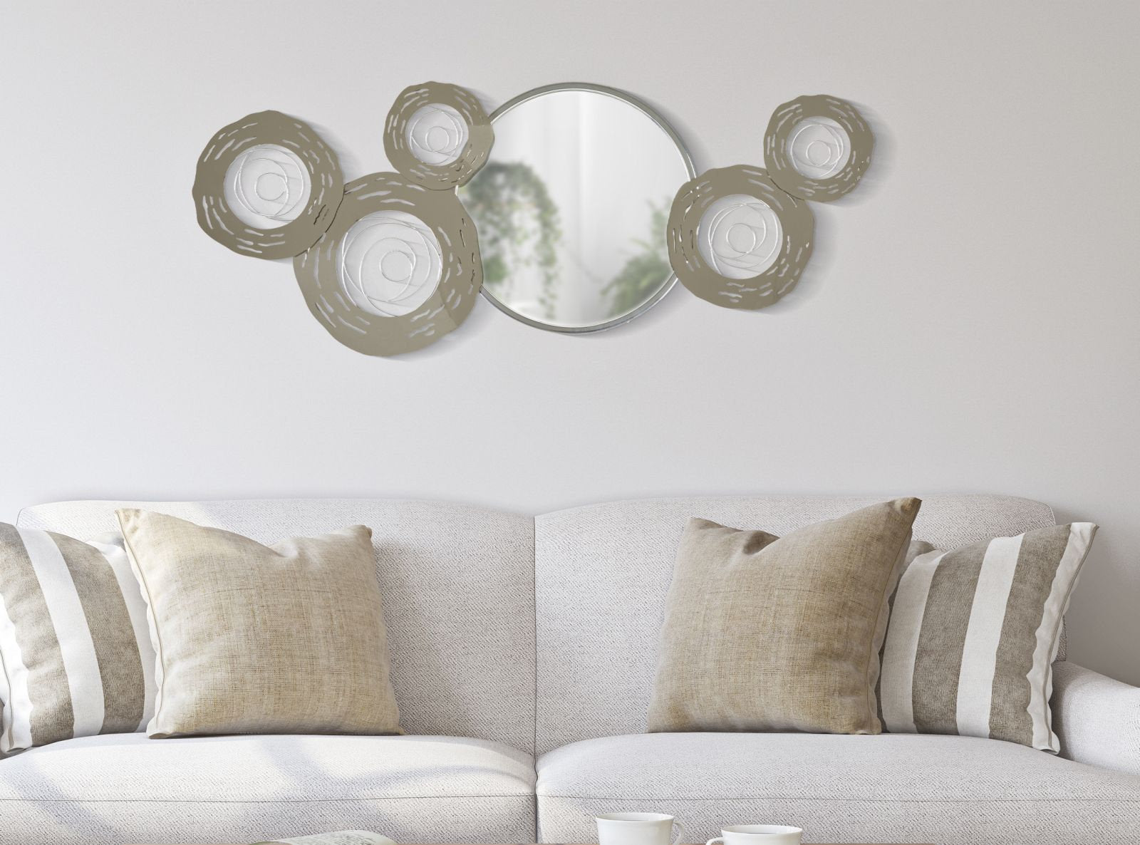 Panel de pared 3D de metal plateado – Arte moderno circular con espejo