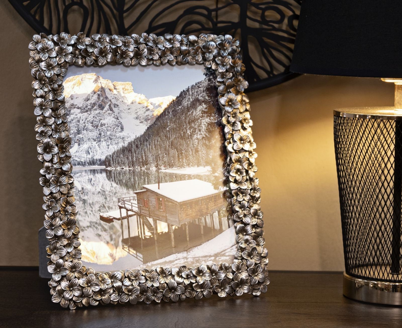 Marco pequeño de resina con forma de flor, 20×25 cm – Estilo decorativo delicado