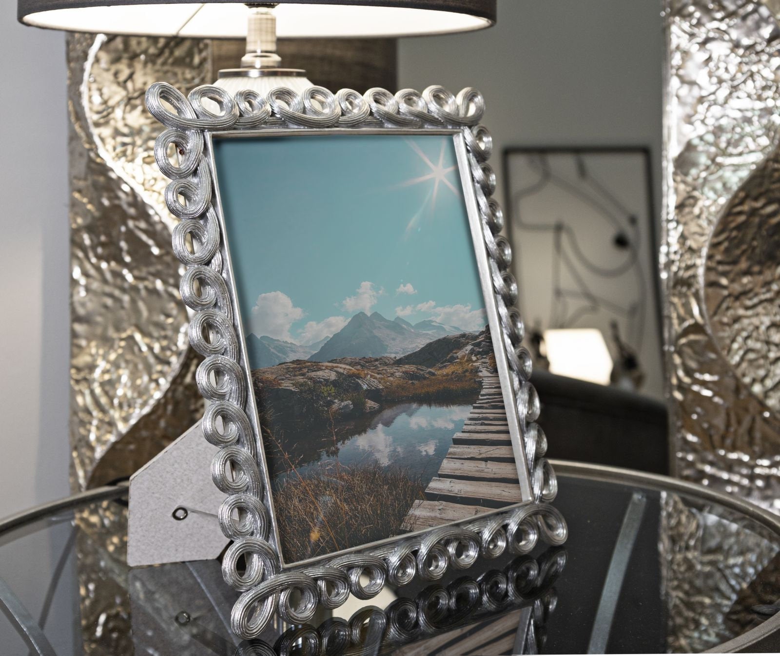 Marco de anillos huecos de plata – Decoración fotográfica moderna y lujosa