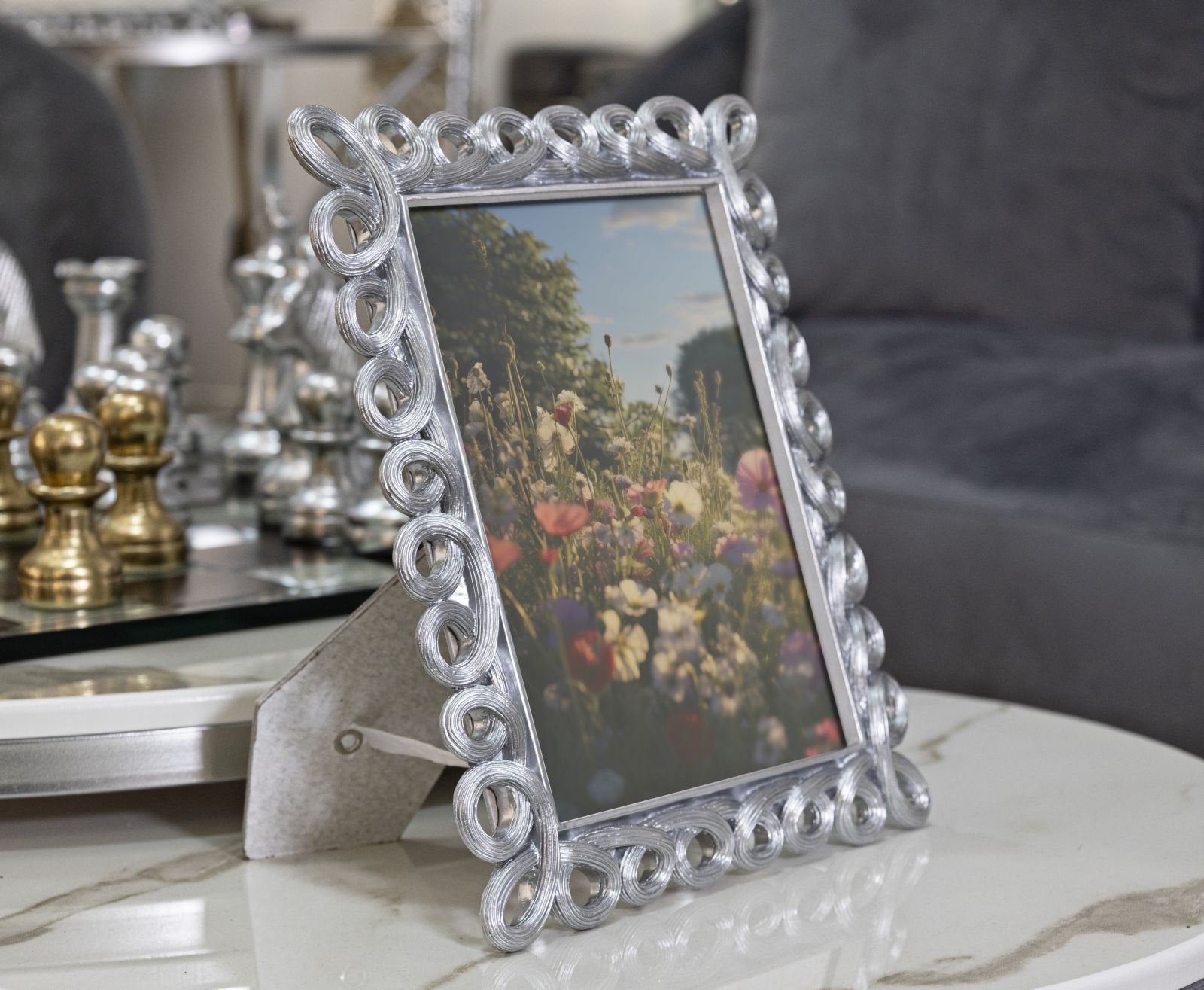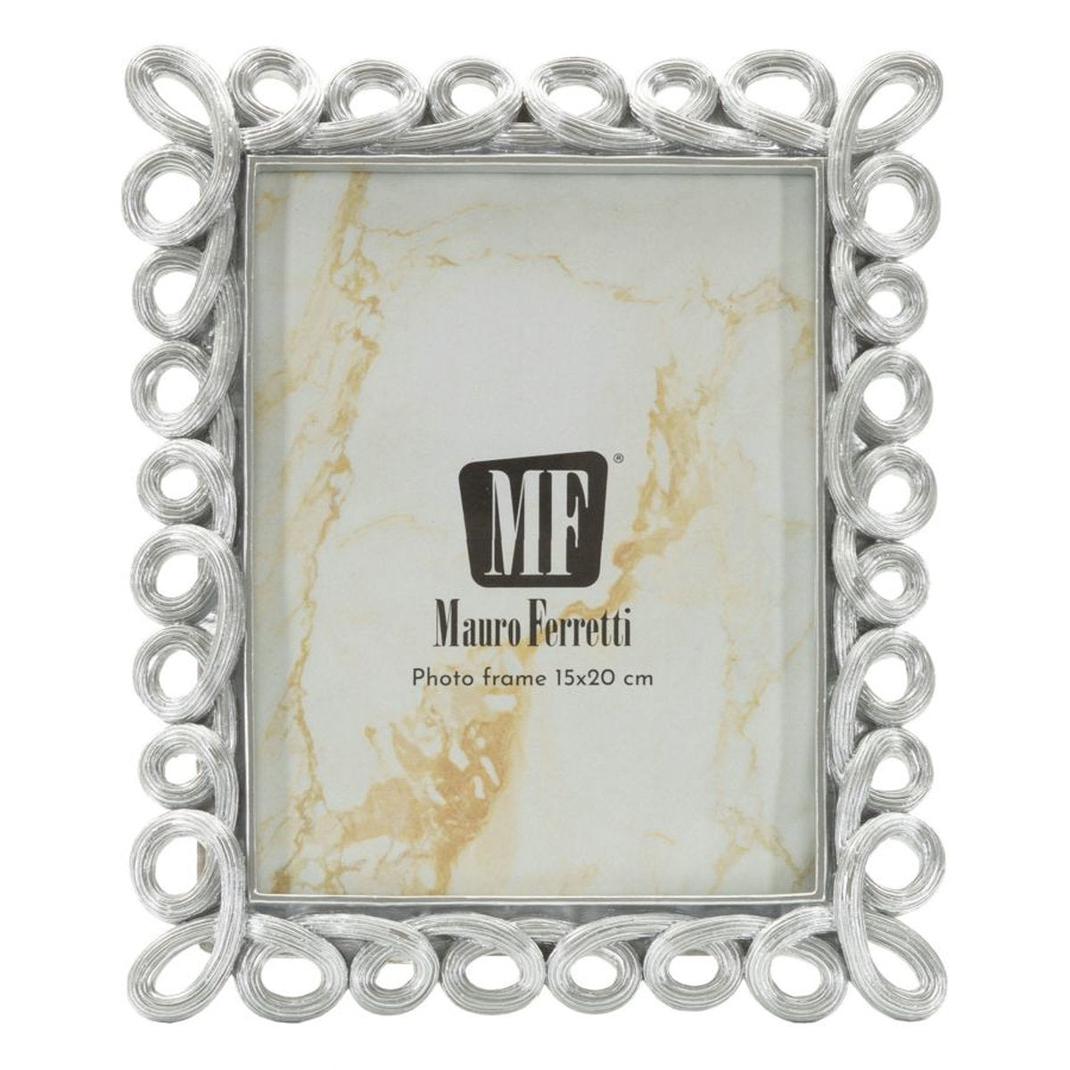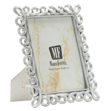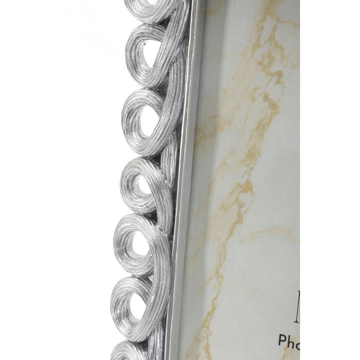Marco plateado con motivo circular hueco: elegante expositor contemporáneo