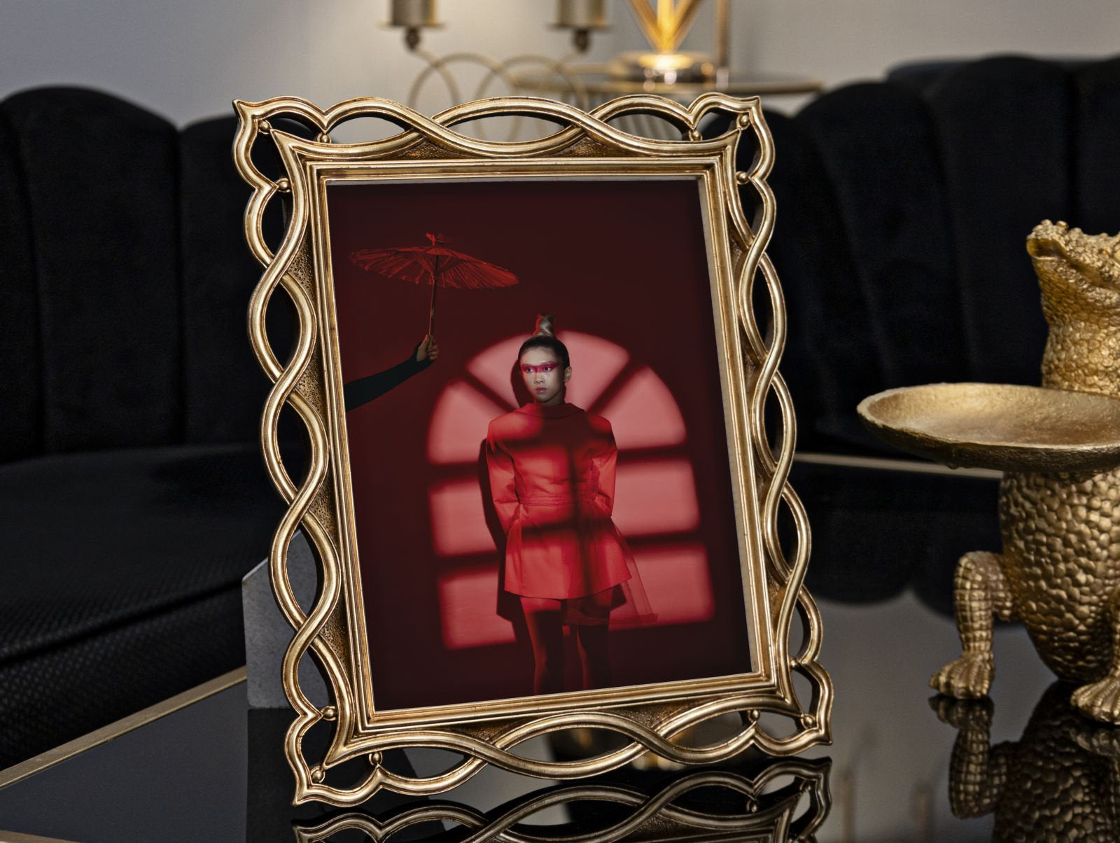 Marco dorado ondulado: elegante diseño decorativo fluido