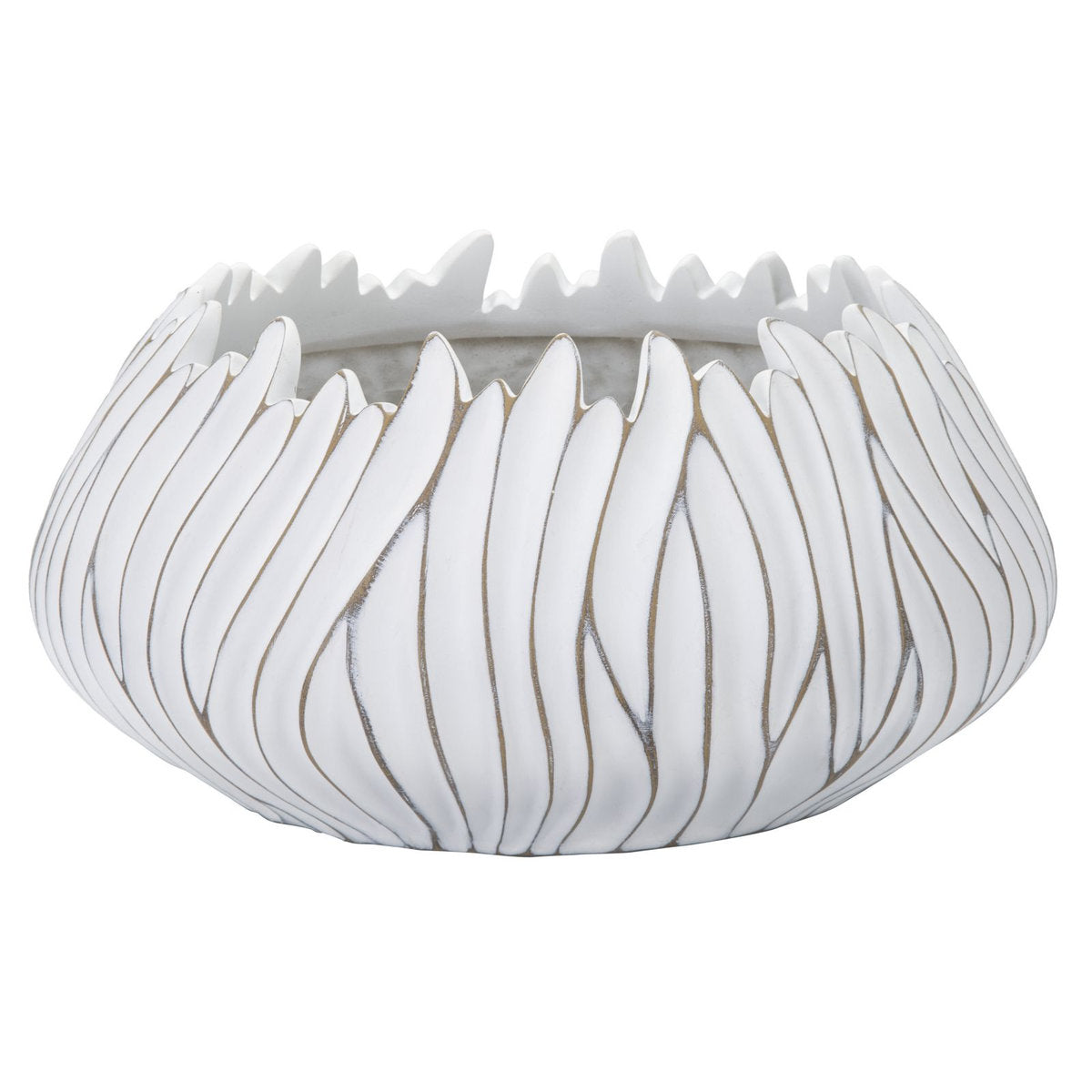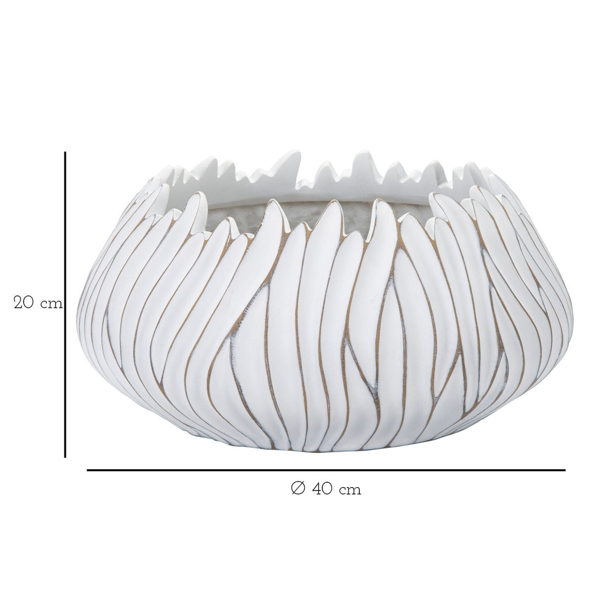 Maceta redonda con relieves ondulados texturizados