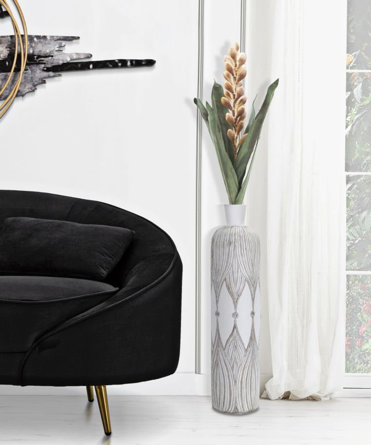 Jarrón tallado de líneas suaves y sinuosas: elegante detalle decorativo