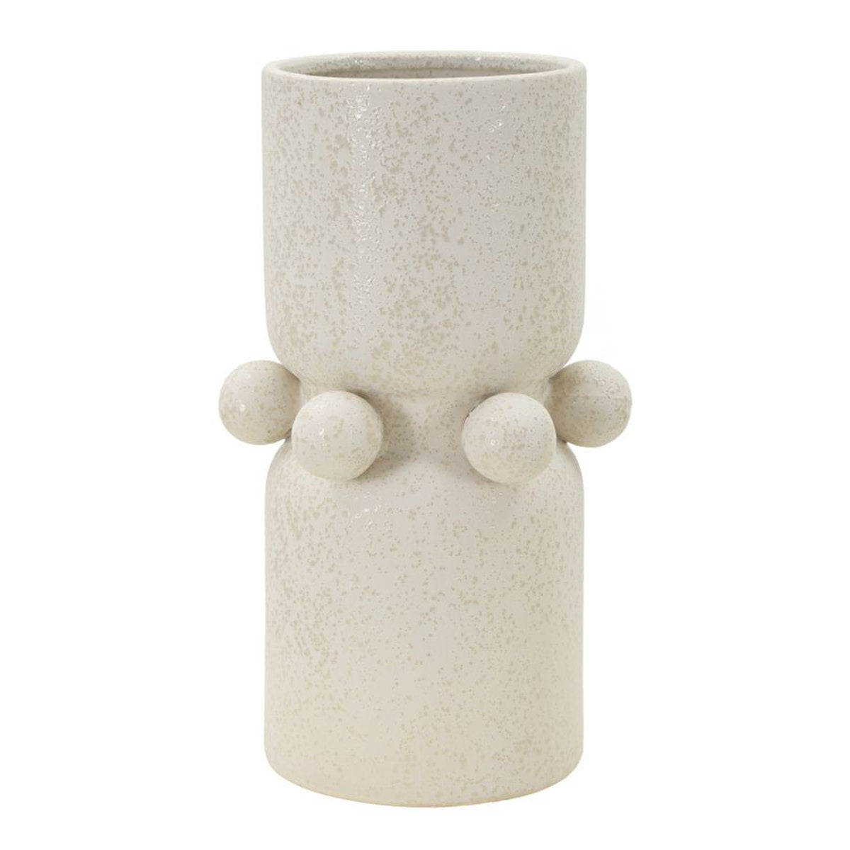 Jarrón de cerámica blanca decorado con esferas – Estilo moderno y elegante