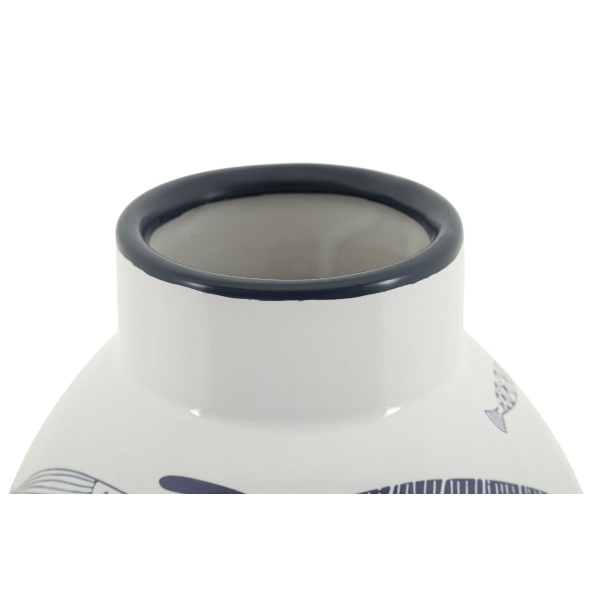 Jarrón de cerámica blanca con motivos marinos de peces y colores azules