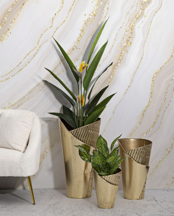 Elegante juego de 3 jarrones dorados: decoración moderna y refinada para el hogar