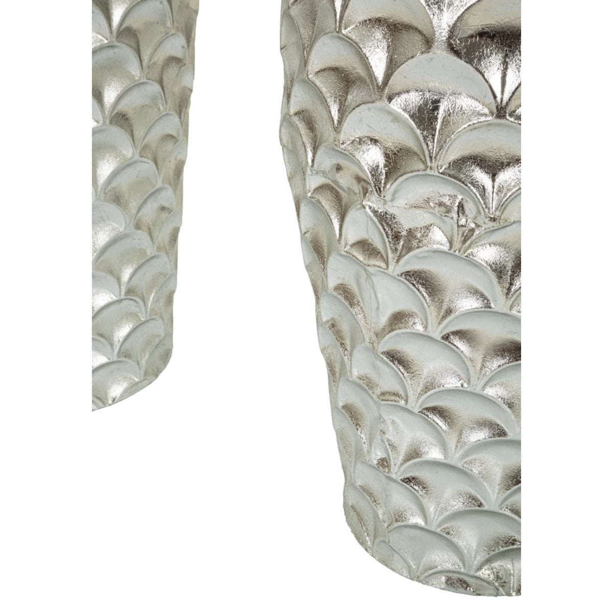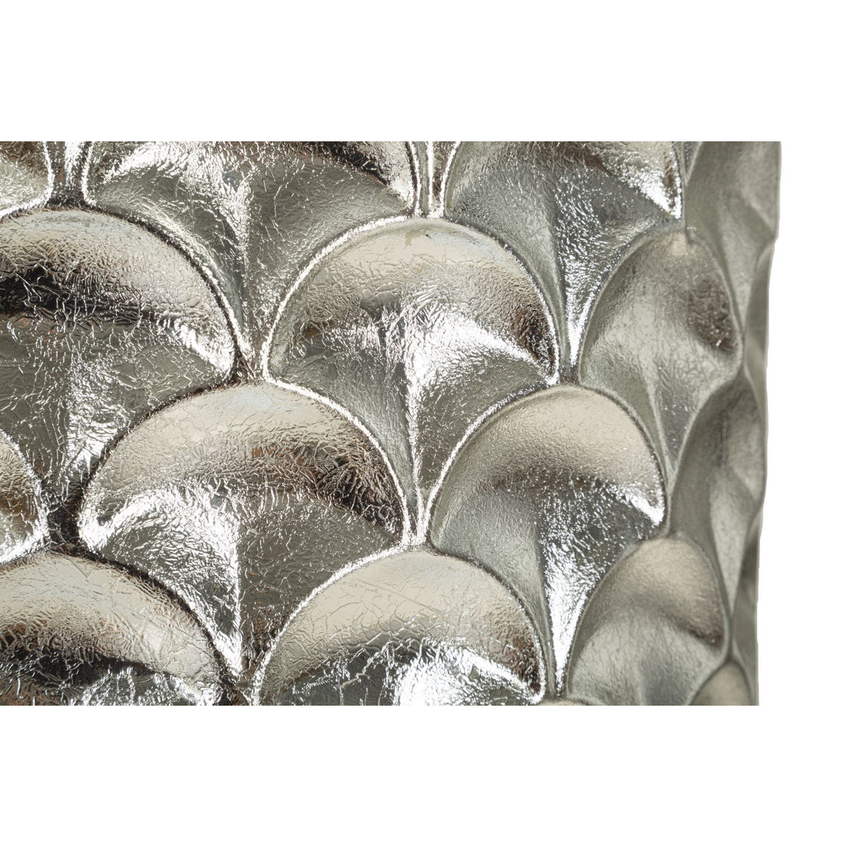 Juego de 2 jarrones redondos de metal plateado con relieve irregular