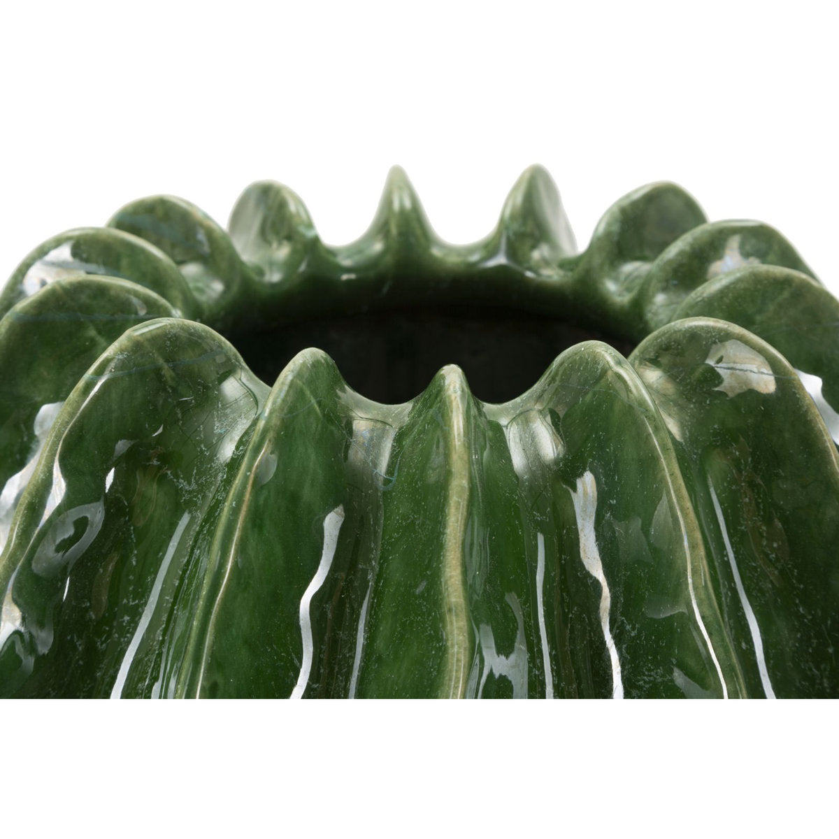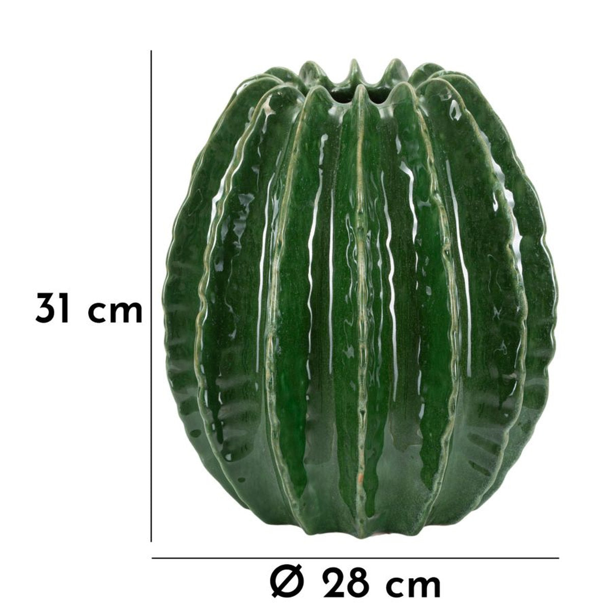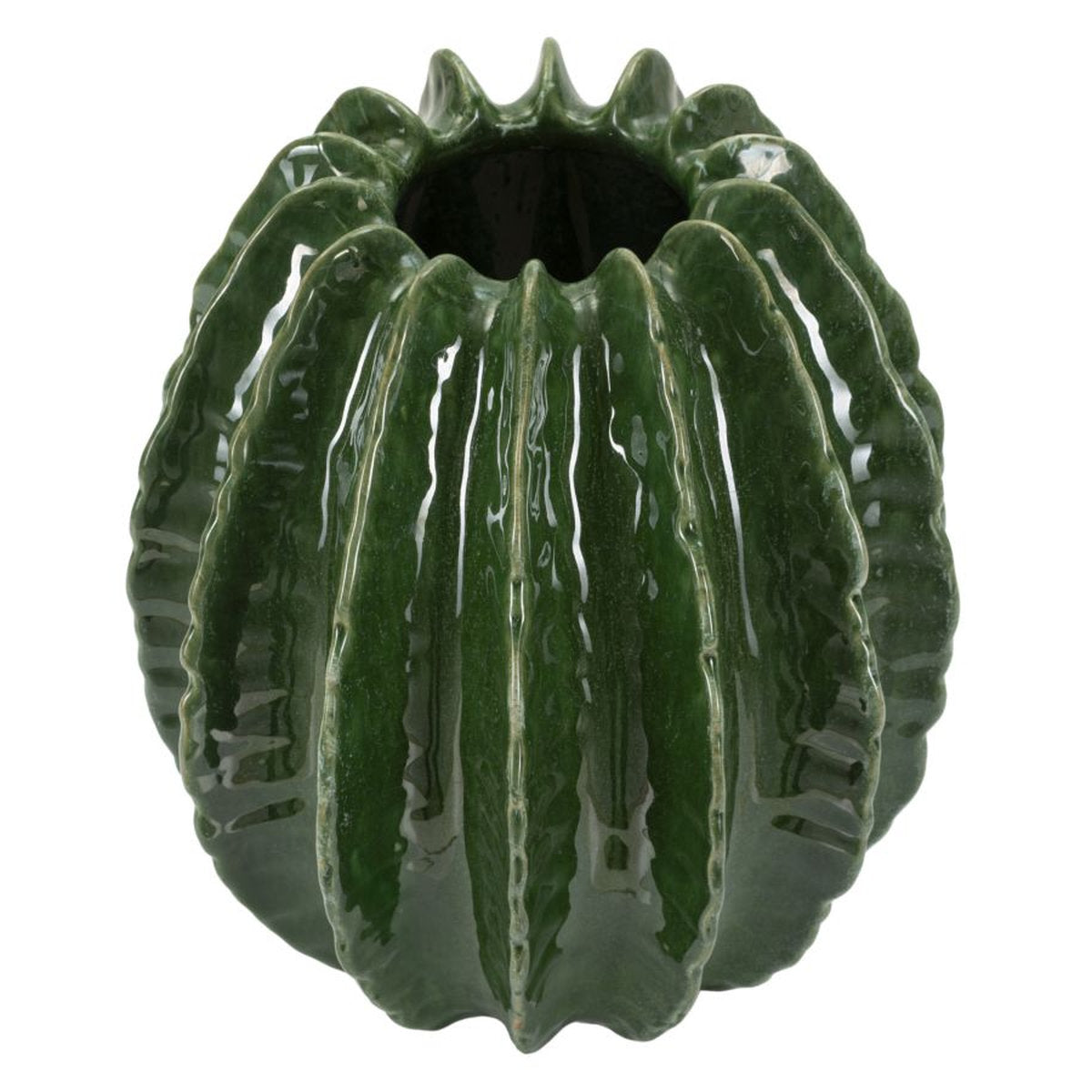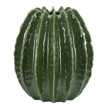 Jarrón redondo inspirado en el cactus con acabado brillante en relieve