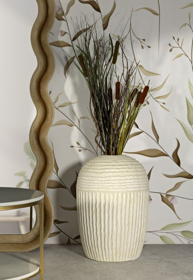 Jarrón alto acanalado mate – Decoración inspirada en la naturaleza invernal