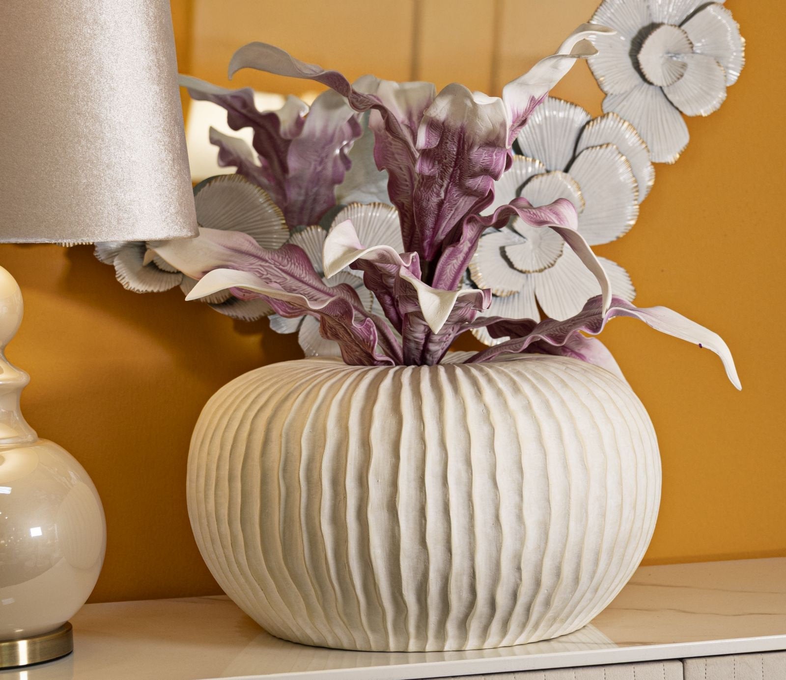 Jarrón bajo y ancho con ranuras – Fuerte presencia decorativa visual
