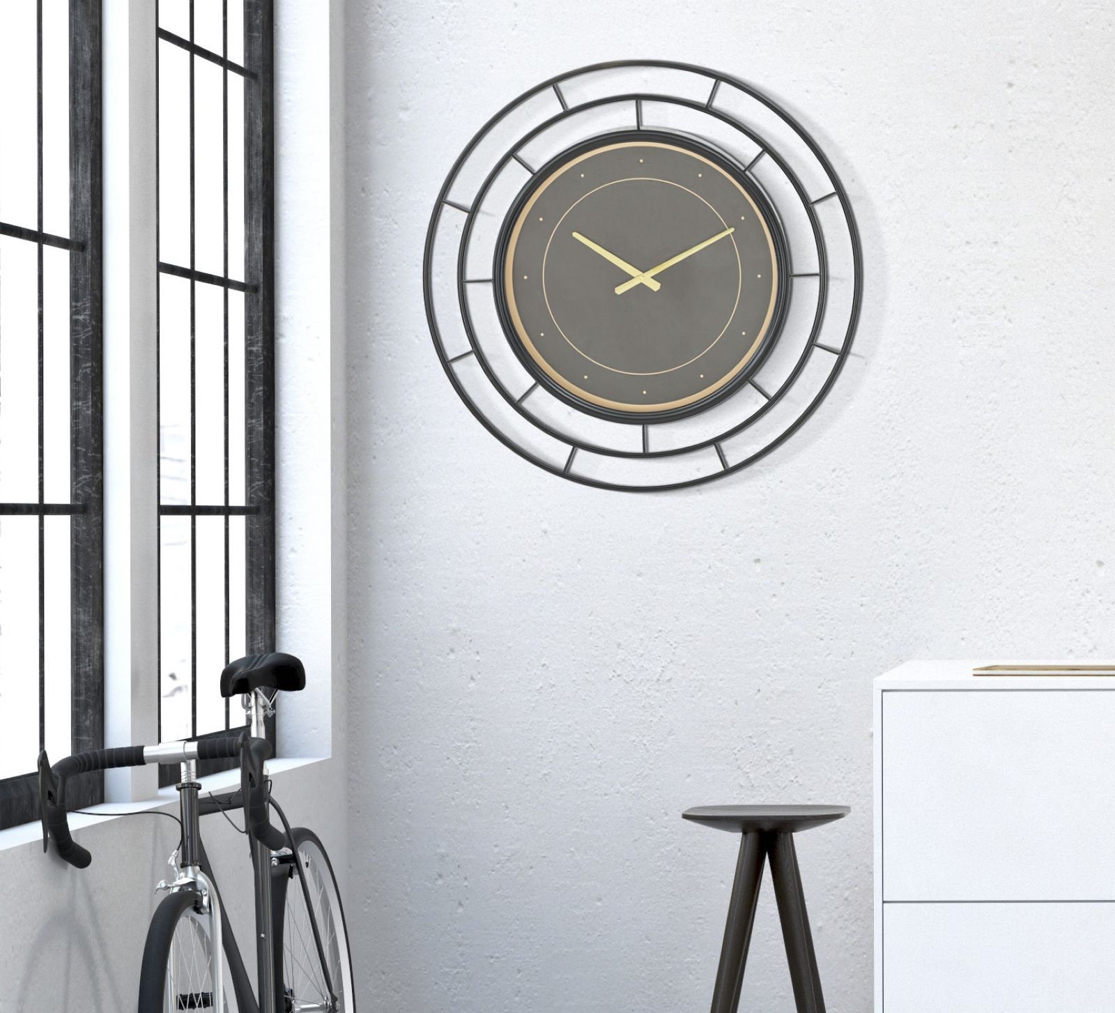 Reloj de pared elegante en negro y dorado – Diseño minimalista y sofisticado