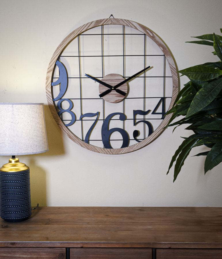Reloj de pared de metal y madera con diseño cuadrado – Estilo moderno y estructurado