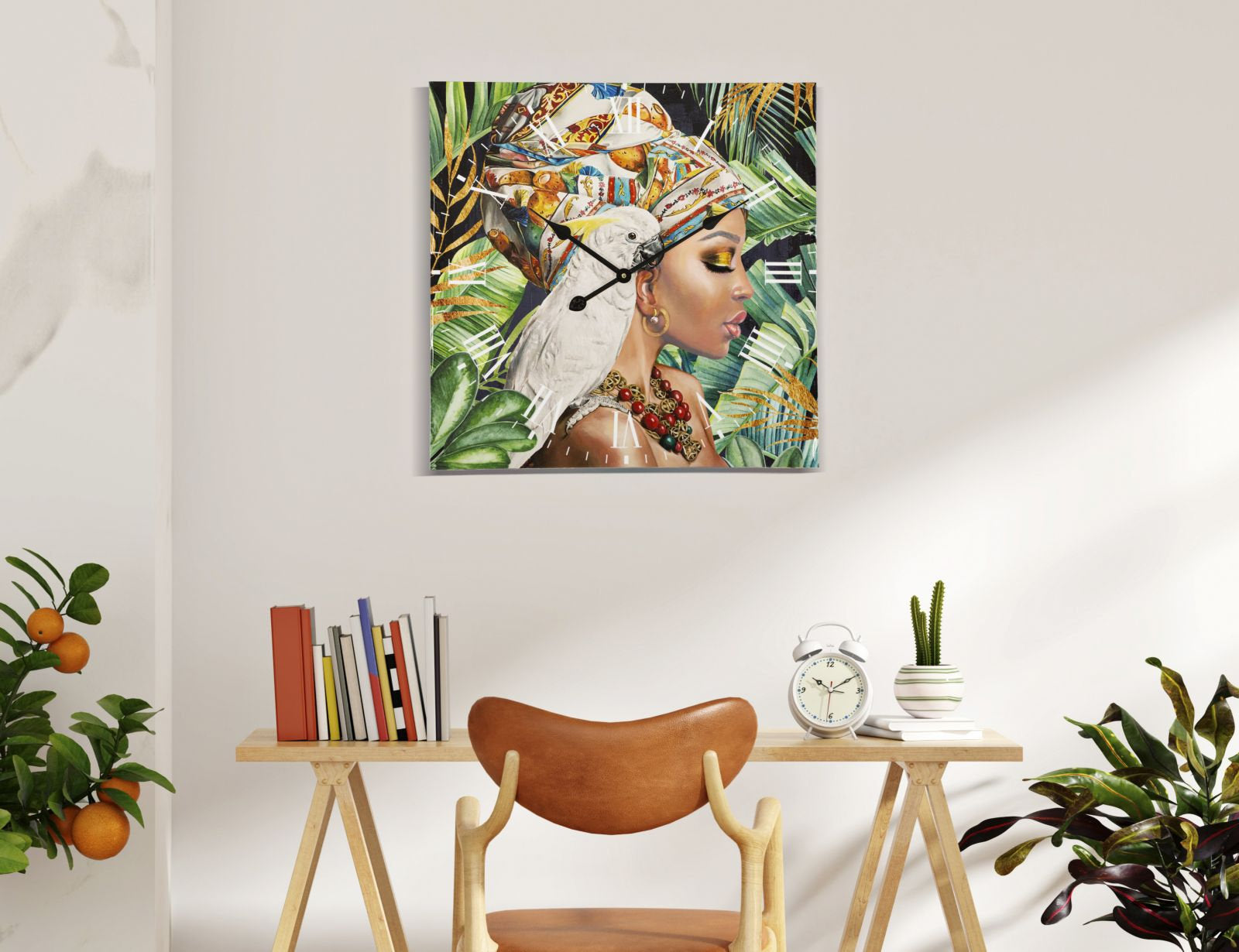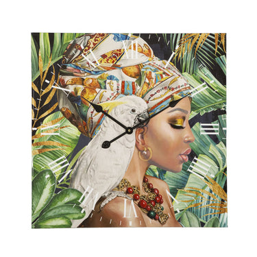 Reloj de pared artístico Mujer y Loro – Pieza decorativa vibrante